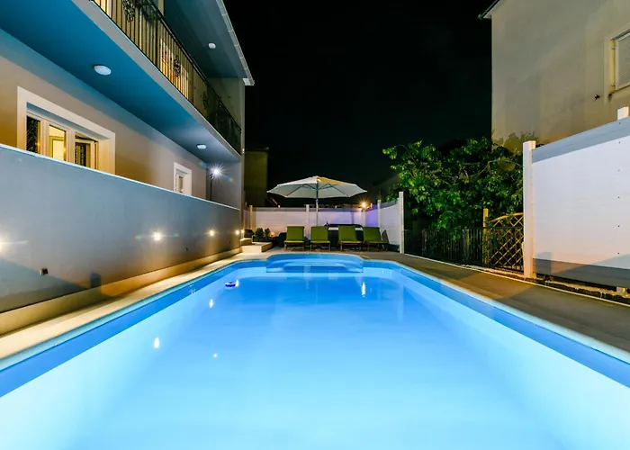 Zusätzlich zu den Annehmlichkeiten für Selbstversorger wie komplette Küche bietet dieses Apartment seinen Gästen eine Essecke. Mit Ausstattung zur Kaffee- & Teezubereitung ausgestattet, bietet diese Unterkunft den Gästen einen komfortablen und mühelosen Aufenthalt. Die Restaurants Day & Night club "FOCUS" und Konoba Fortin mit einer großen Auswahl an Gerichten erreichen Sie in 11 Minuten zu Fuß. Die Villa Mihaela ist in einer Entfernung von 800 Metern zur Bushaltestelle Seget Donji. Erleben Sie pure Entspannung im Wellnessbereich mit einer Sonnenterrasse, einer Terrasse und den Gärten.